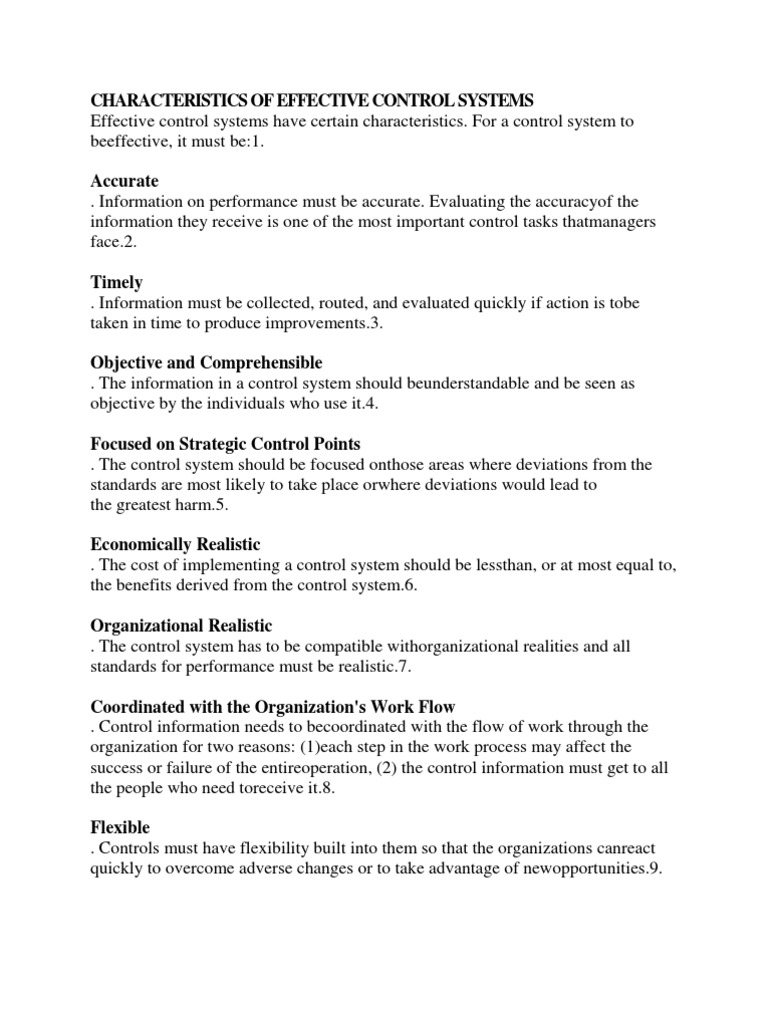 Effective Organizational Control Systems What Are Characteristics Of Effective Control System An effective control system not only checks for and identifies deviation but also is programmed to suggest solutions to correct such a deviation. Coso framework’s 17 principles of effective internal control. What effective internal control looks like in practice; These characteristics are as follows: A focus on critical points. An effective control system begins with clearly defined objectives and standards.. What Are Characteristics Of Effective Control System.
